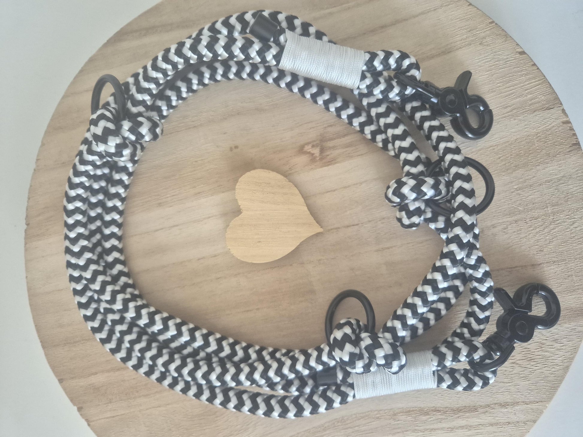 Die Leine besteht aus PPM-Tauseil. Tau ist schön leicht und bietet dir und deinem Hund ein angenehmes Tragegefühl. Die dargestellte Leine ist 2,20 m - 2,30 m lang und lässt sich 3fach verstellen: