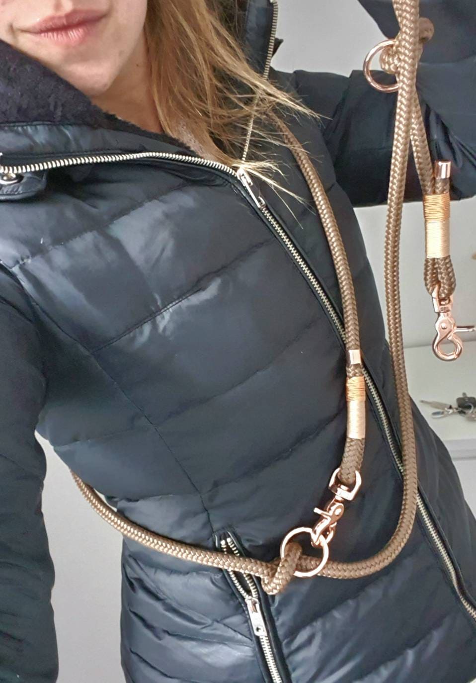Die Leine besteht aus PPM-Tauseil. Tau ist schön leicht und bietet dir und deinem Hund ein angenehmes Tragegefühl. Die dargestellte Leine ist 2,20 m - 2,30 m lang und lässt sich 3fach verstellen: