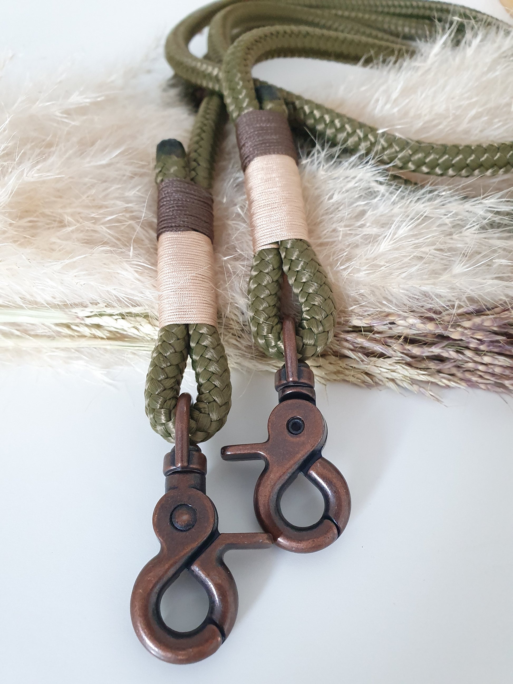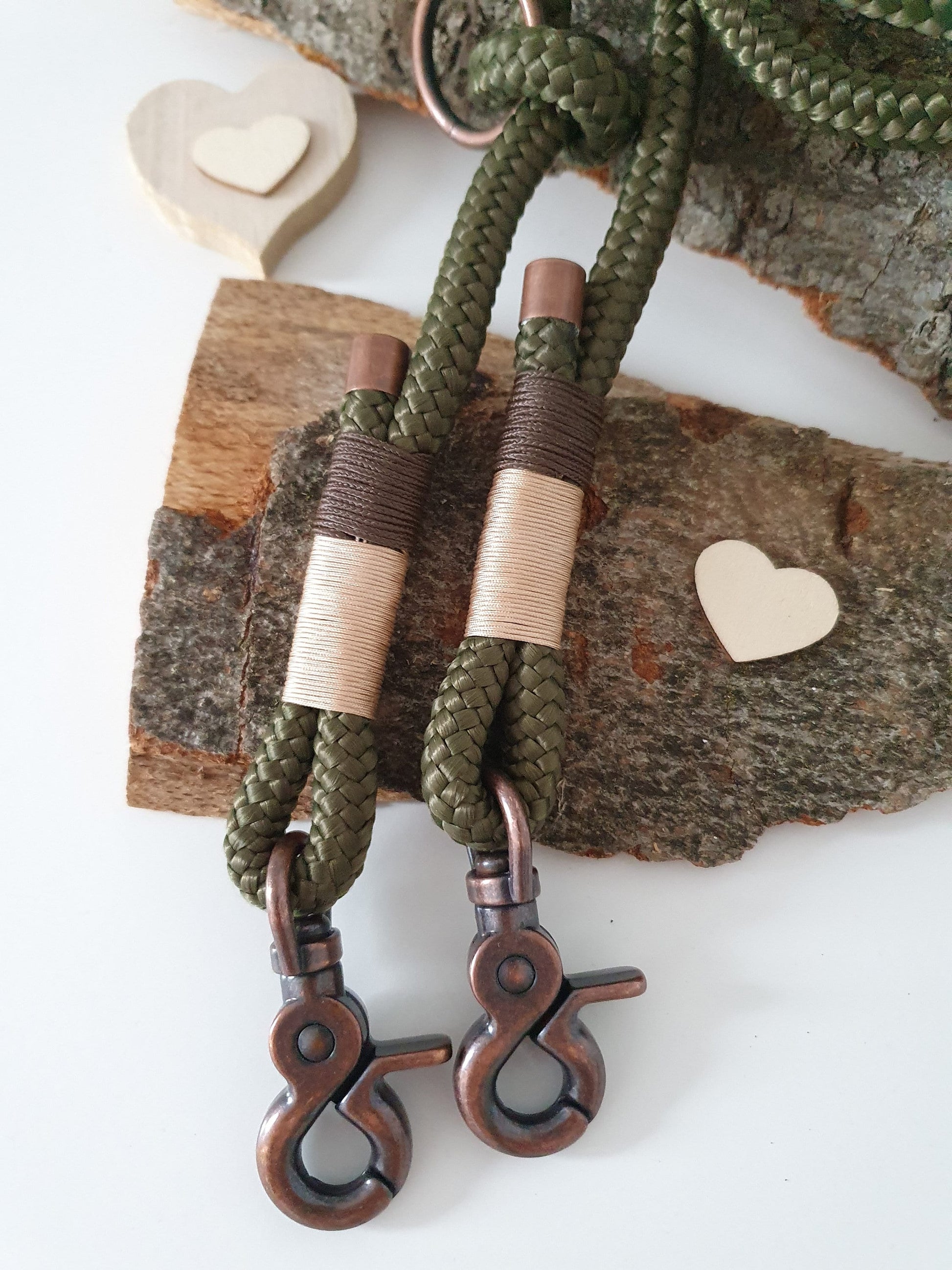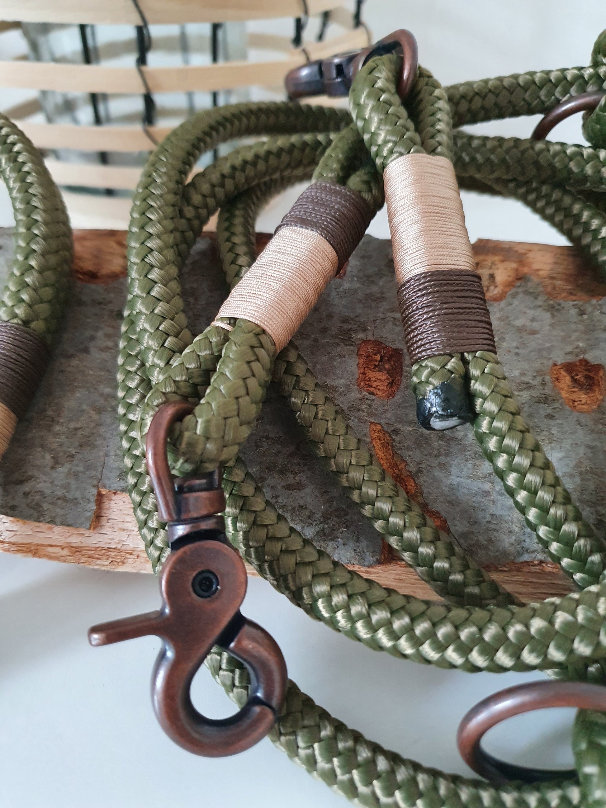 Die Leine besteht aus PPM-Tauseil. Tau ist schön leicht und bietet dir und deinem Hund ein angenehmes Tragegefühl. Die dargestellte Leine ist 2,20 m - 2,30 m lang und lässt sich 3fach verstellen: