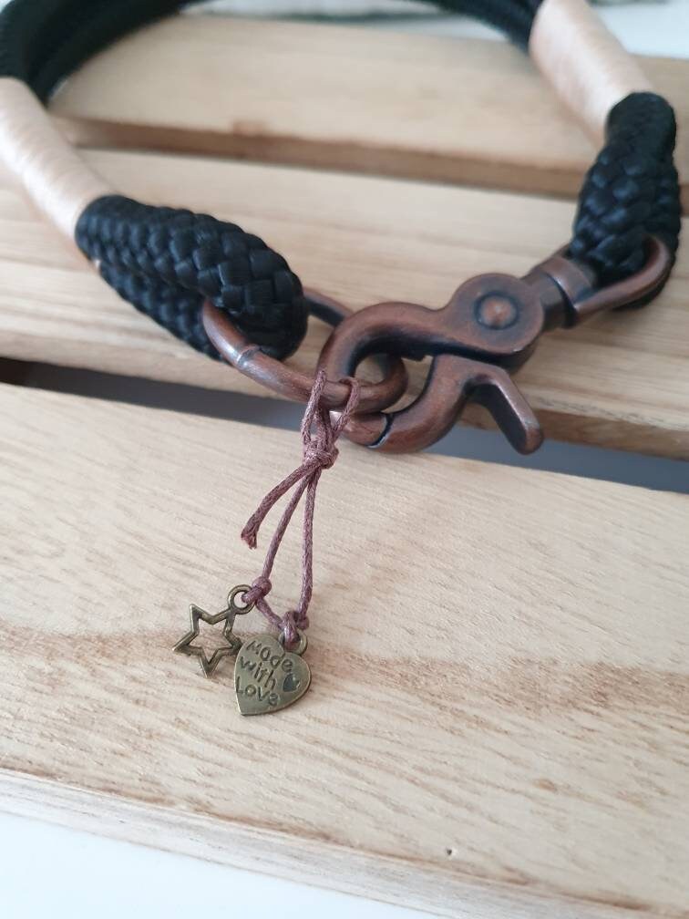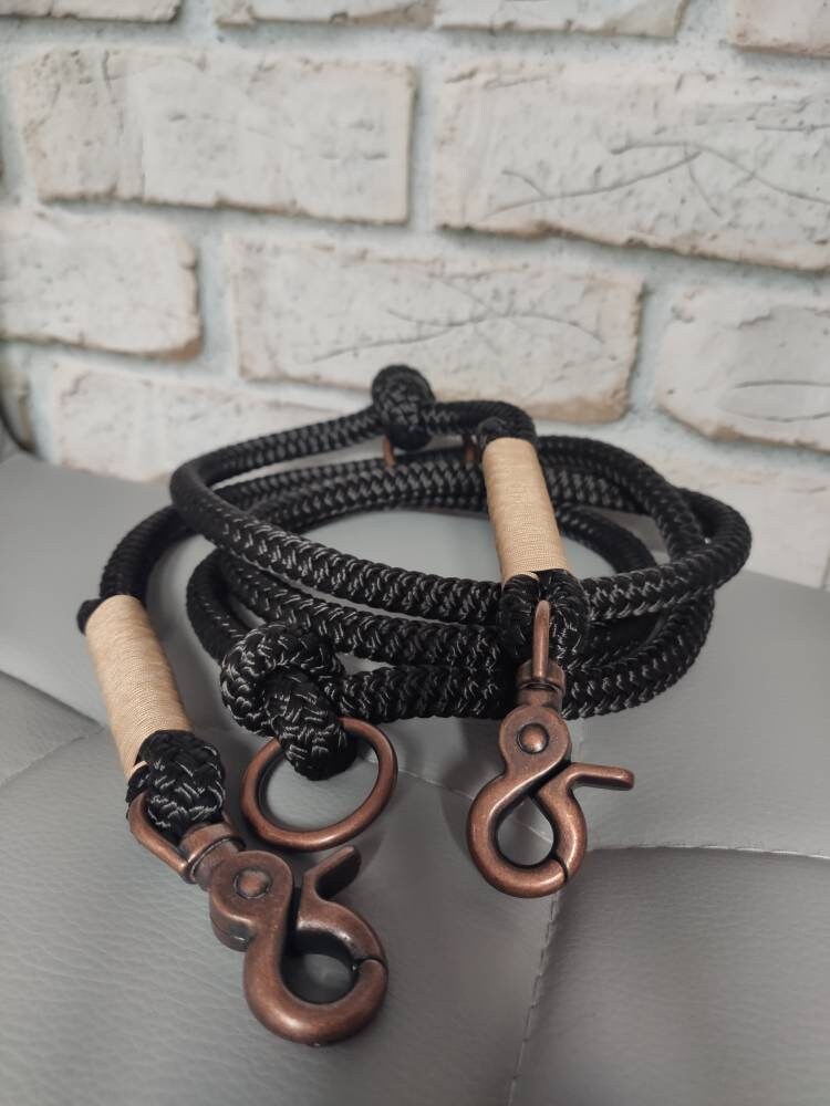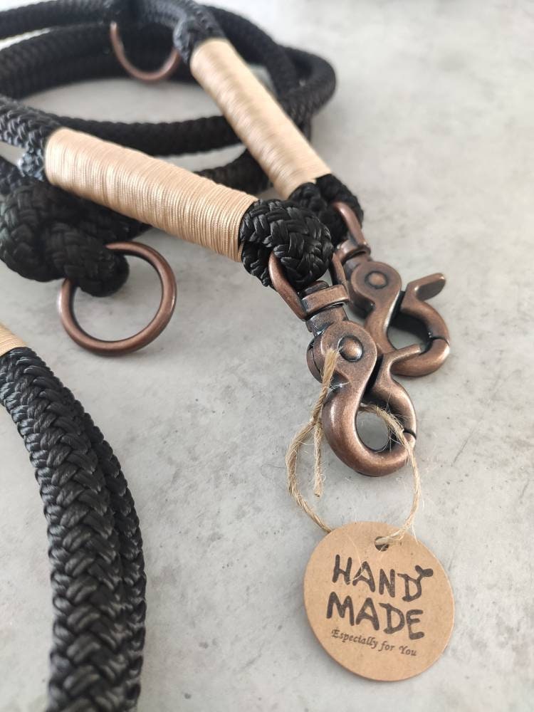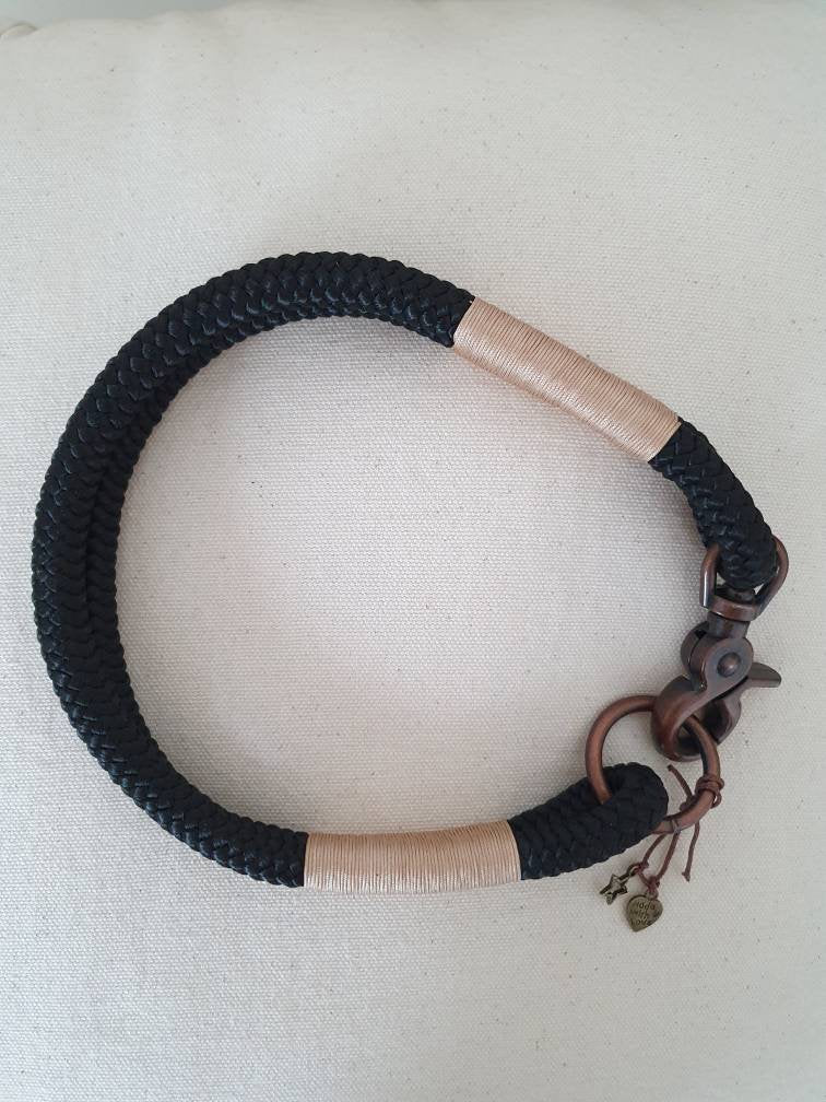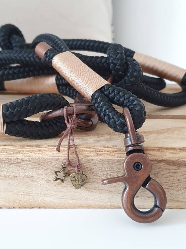 Das Set besteht aus Leine und Halsband aus Tauseil. Tau ist schön leicht und bietet dir und deinem Hund ein angenehmes Tragegefühl. Die dargestellte Leine ist 2,20 m - 2,30 m lang und lässt sich 3fach verstellen: