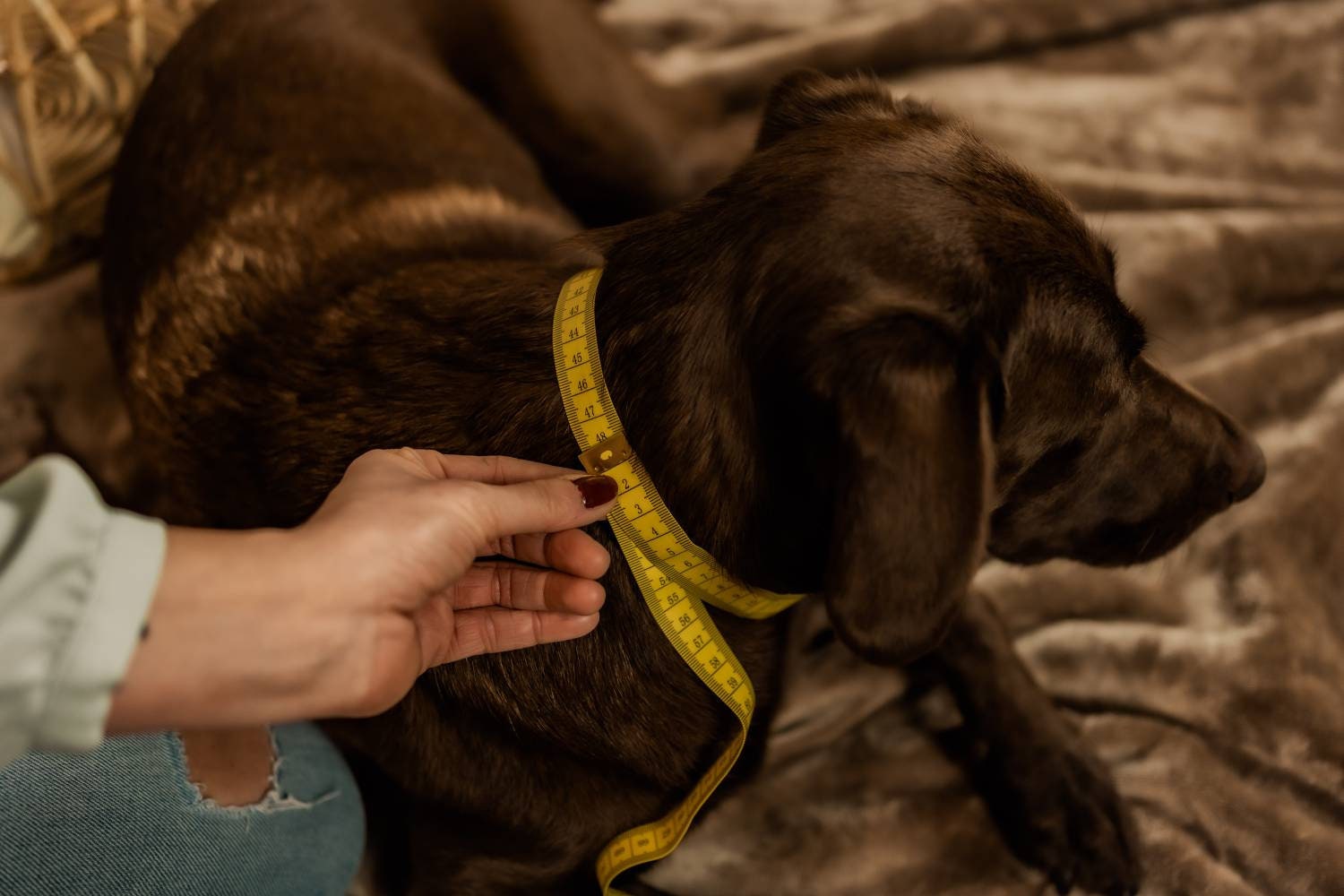 Am besten mit einem Maßband direkt am Hals deines Hundes messen.