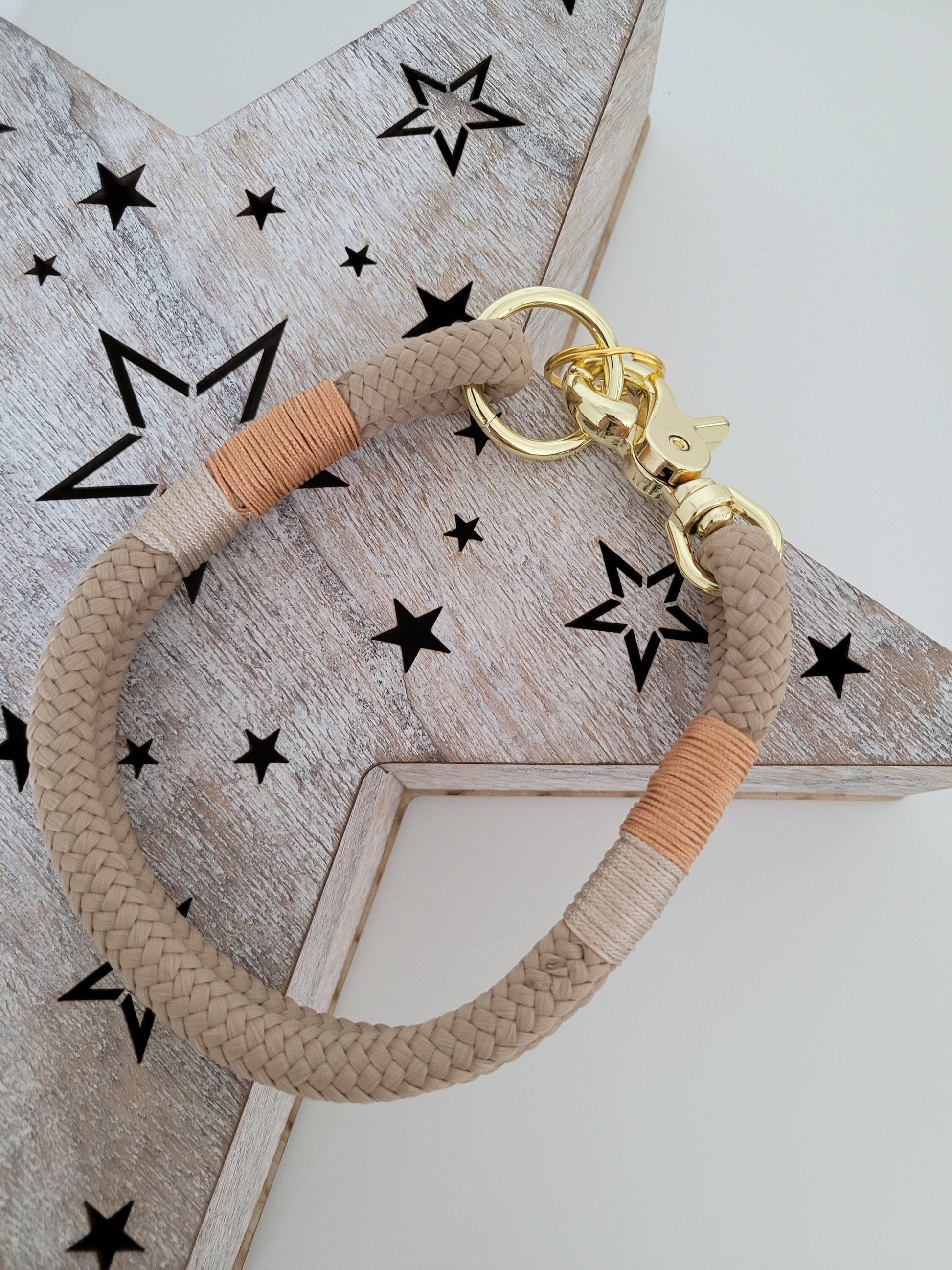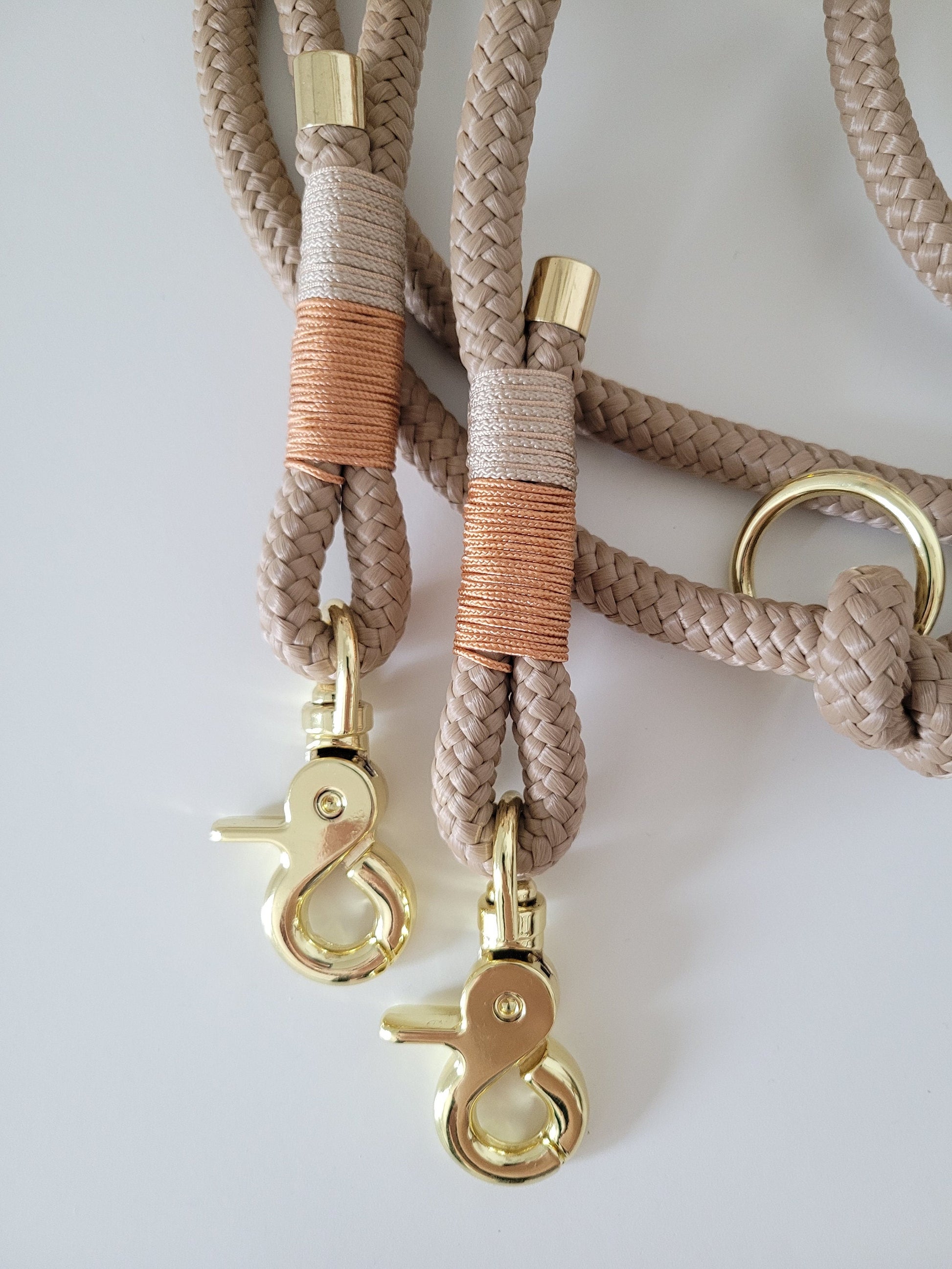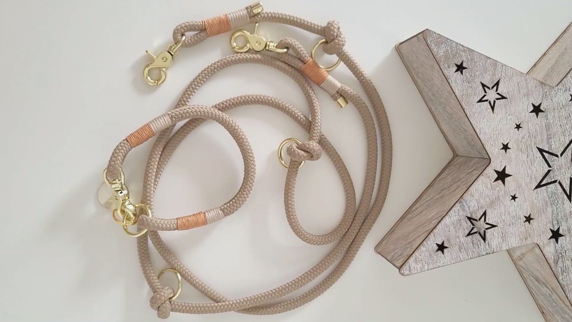 Das Set besteht aus Leine und Halsband aus Tauseil. Tau ist schön leicht und bietet dir und deinem Hund ein angenehmes Tragegefühl. Die dargestellte Leine ist 2,20 m - 2,30 m lang und lässt sich 3fach verstellen: