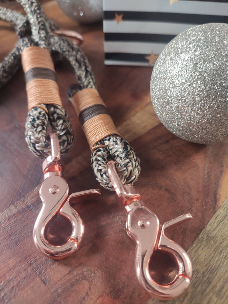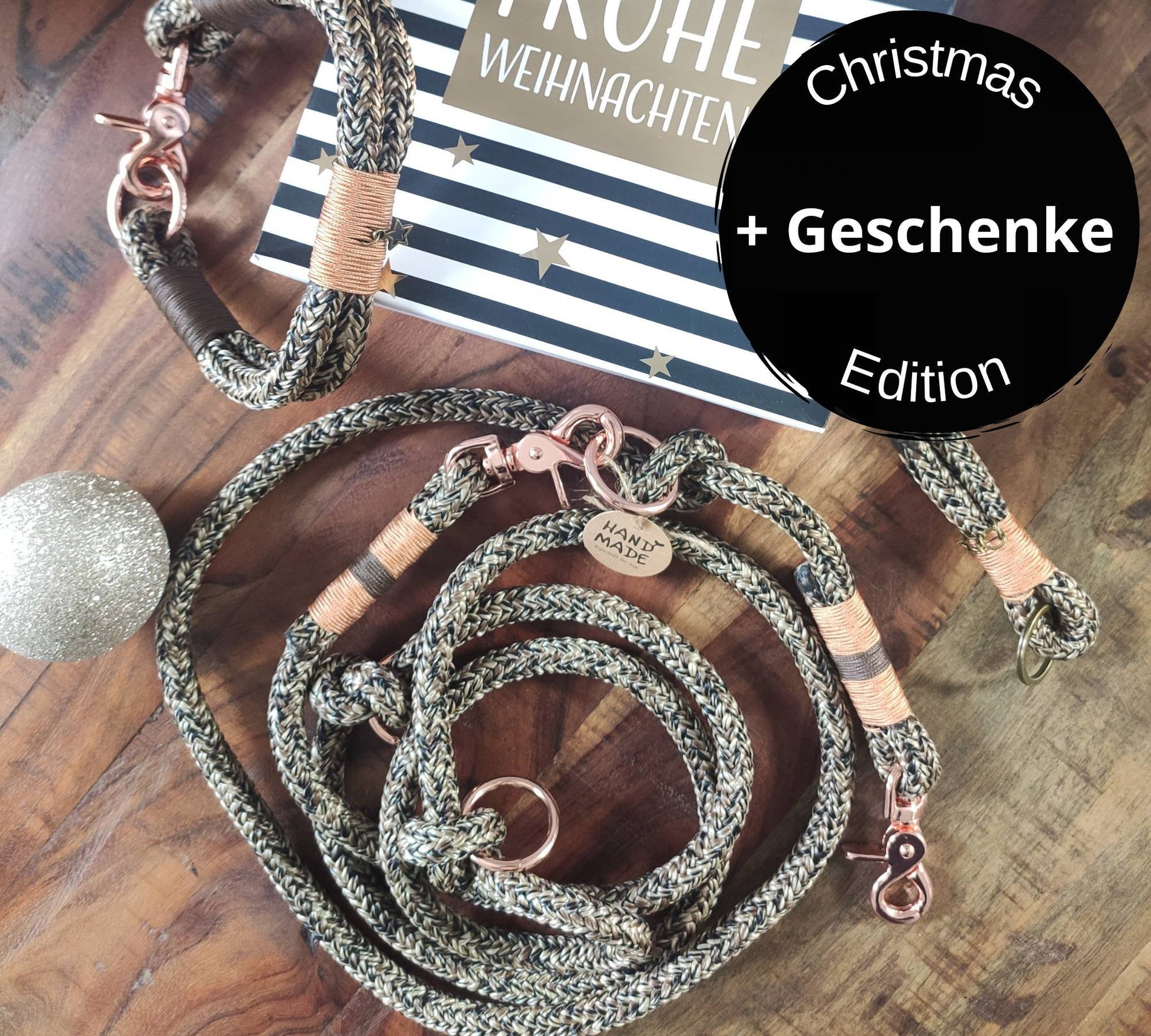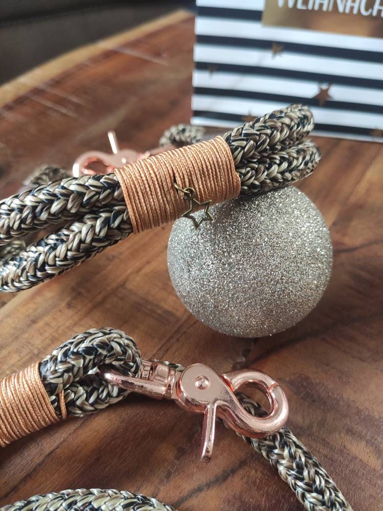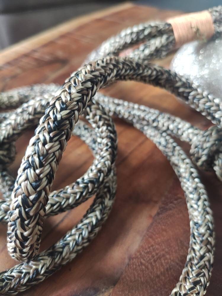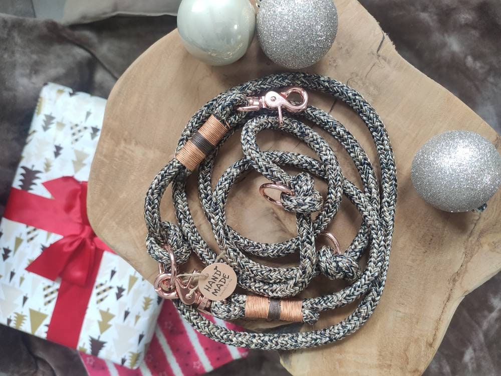 Das Set besteht aus Leine und Halsband aus Tauseil. Tau ist schön leicht und bietet dir und deinem Hund ein angenehmes Tragegefühl. Die dargestellte Leine ist 2,20 m - 2,30 m lang und lässt sich 3fach verstellen: