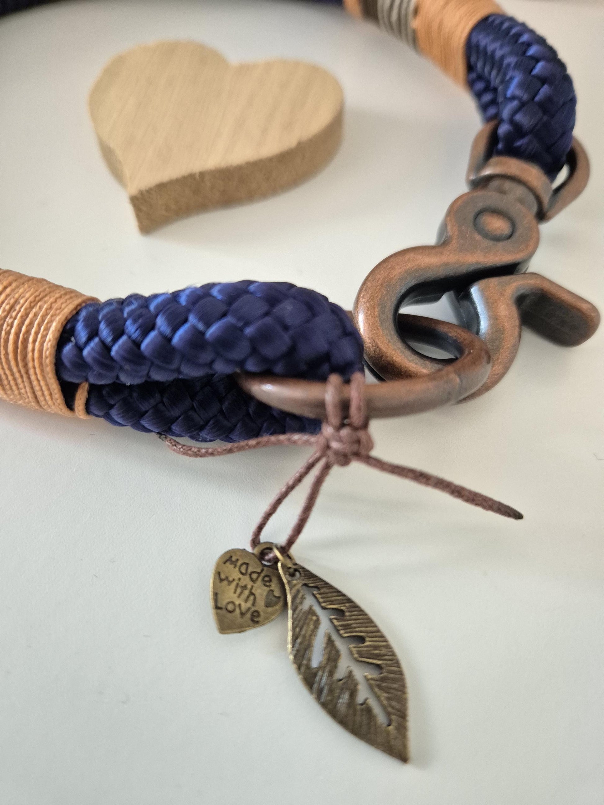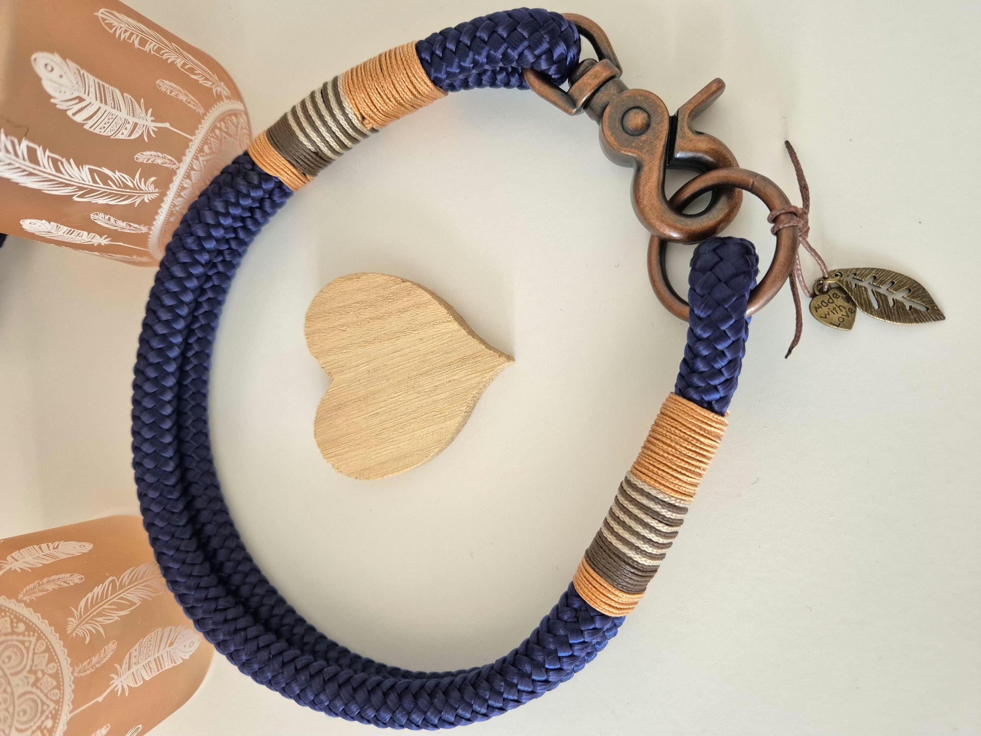 Das Set besteht aus Leine und Halsband aus Tauseil. Tau ist schön leicht und bietet dir und deinem Hund ein angenehmes Tragegefühl. Die dargestellte Leine ist 2,20 m - 2,30 m lang und lässt sich 3fach verstellen: