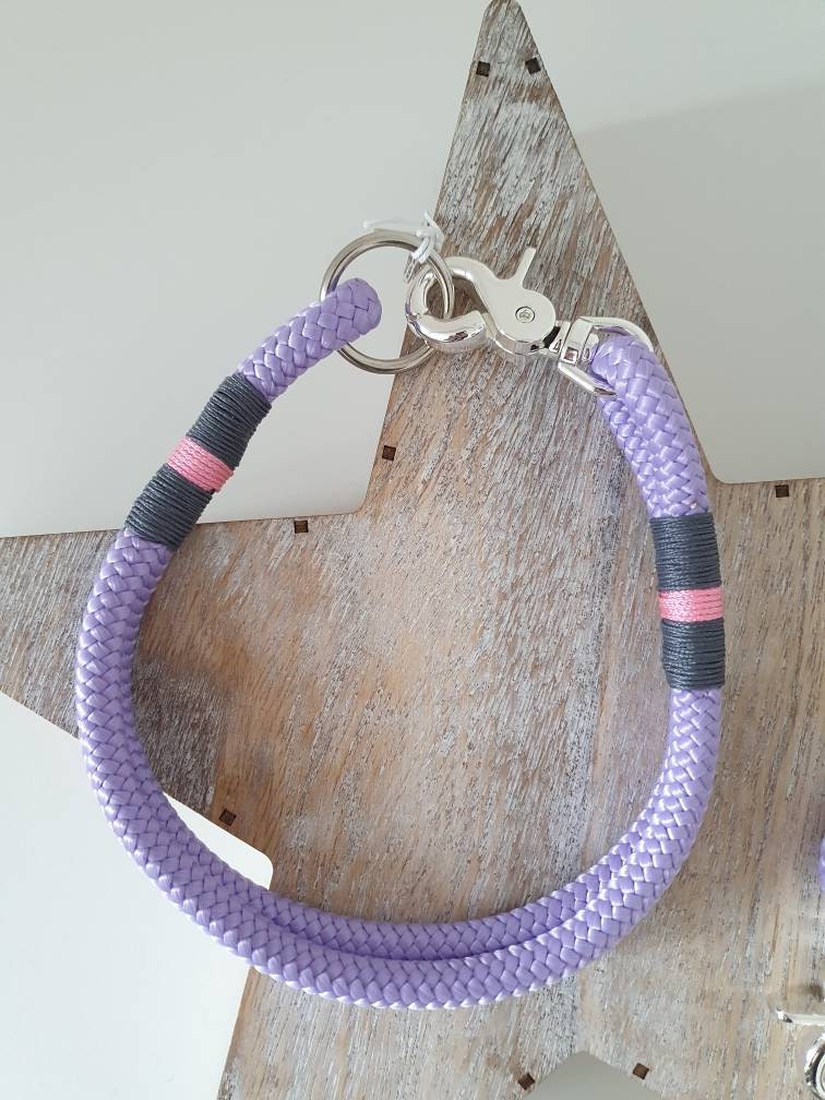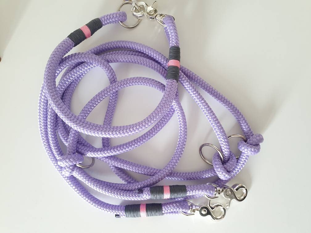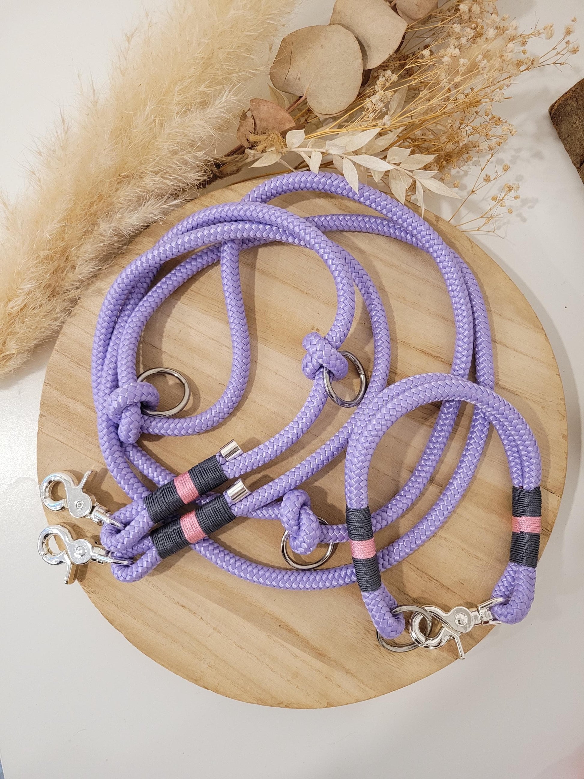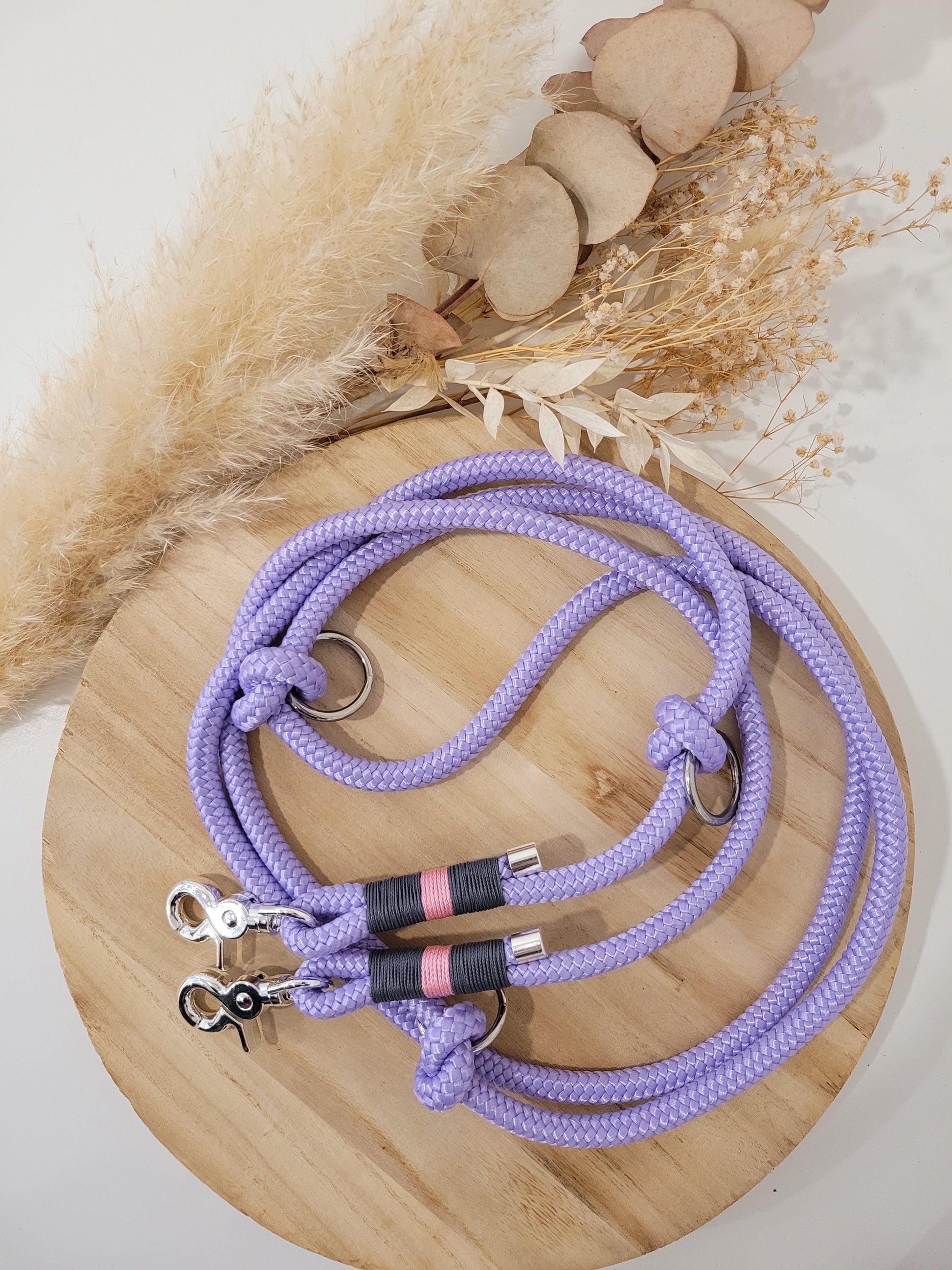 Das Set besteht aus Leine und Halsband aus Tauseil. Tau ist schön leicht und bietet dir und deinem Hund ein angenehmes Tragegefühl. Die dargestellte Leine ist 2,20 m - 2,30 m lang und lässt sich 3fach verstellen: