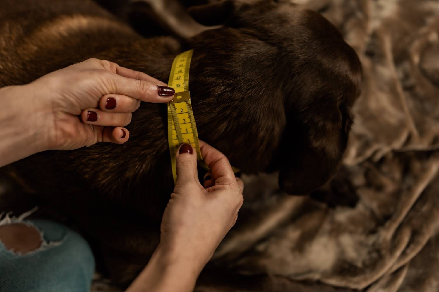 Am besten mit einem Maßband direkt am Hals deines Hundes messen.
