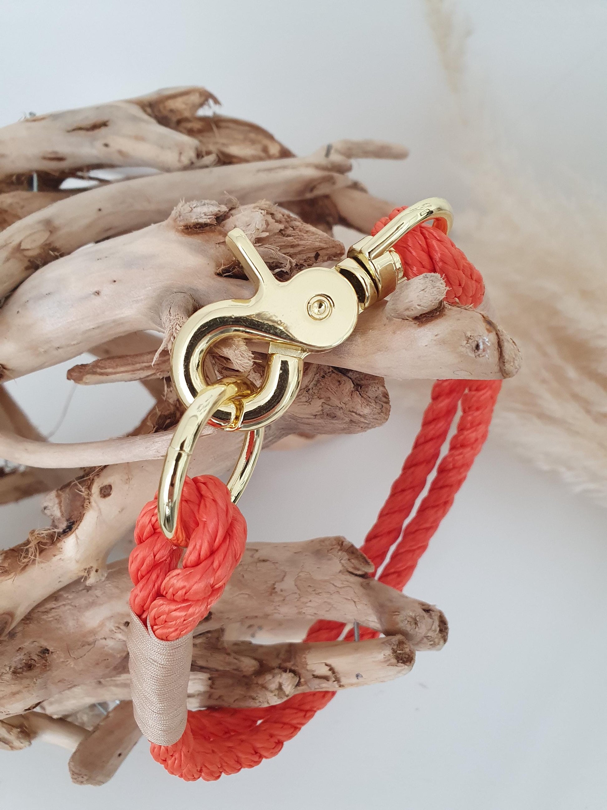 Das Set besteht aus Leine und Halsband aus Tauseil. Tau ist schön leicht und bietet dir und deinem Hund ein angenehmes Tragegefühl. Die dargestellte Leine ist 2,20 m - 2,30 m lang und lässt sich 3fach verstellen: