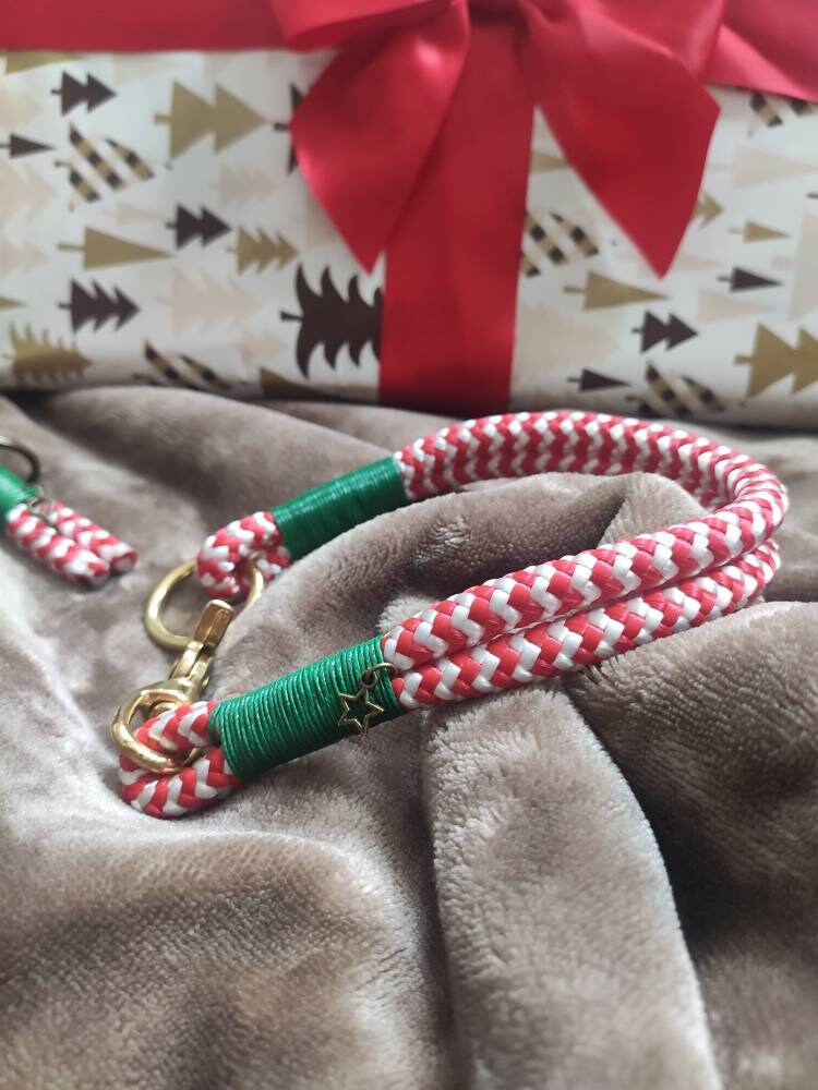 Das Set besteht aus Leine und Halsband aus Tauseil. Tau ist schön leicht und bietet dir und deinem Hund ein angenehmes Tragegefühl. Die dargestellte Leine ist 2,20 m - 2,30 m lang und lässt sich 3fach verstellen: